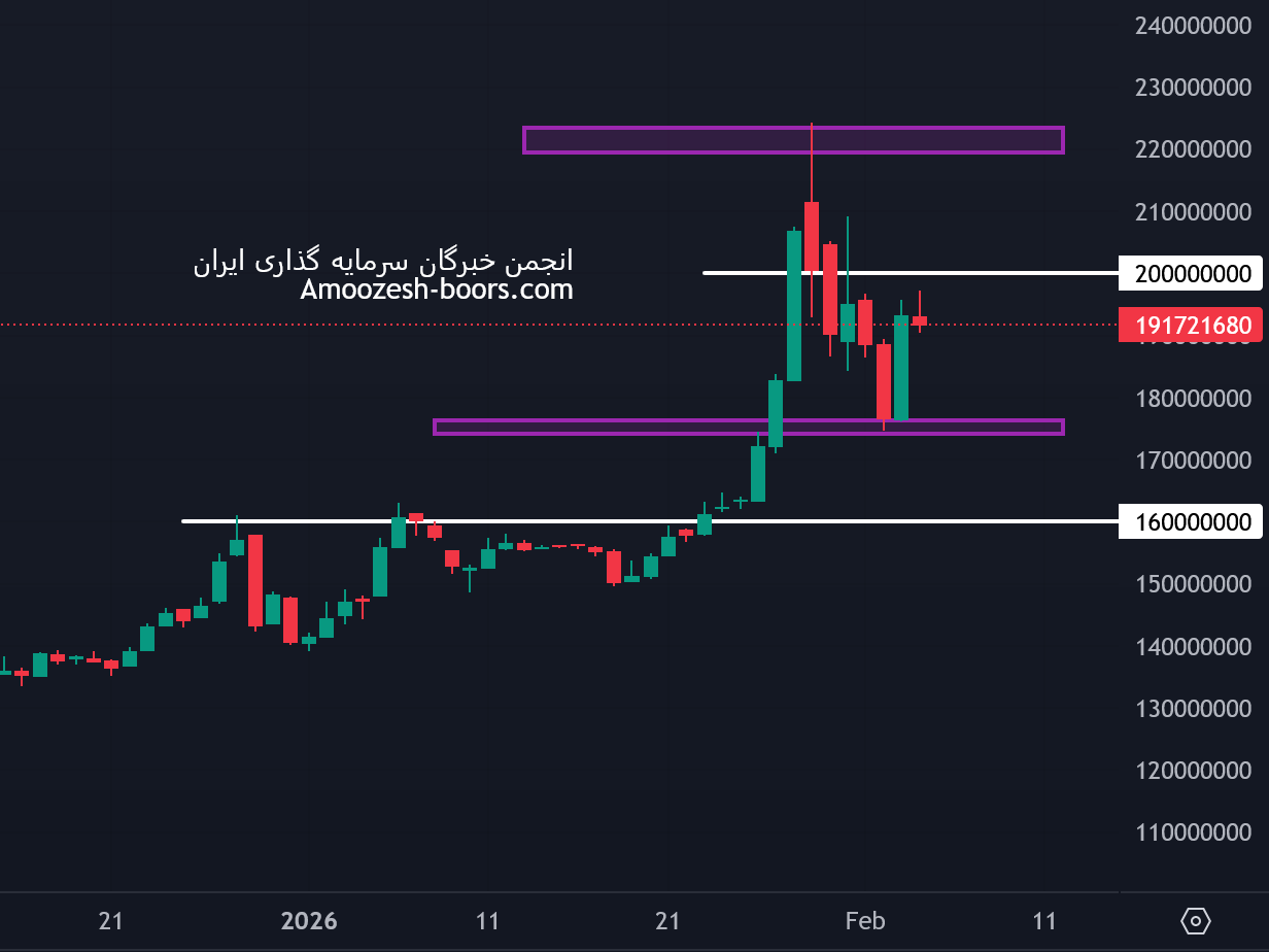 ۳- در سناریوی سوم که احتمال رخ دادن آن بسیار اندک (حدود ۵٪) است، قیمت وارد اصلاح عمیق قیمتی شده و به محدوده 5 میلیون و 400 هزار تومان نزدیک خواهد شد.