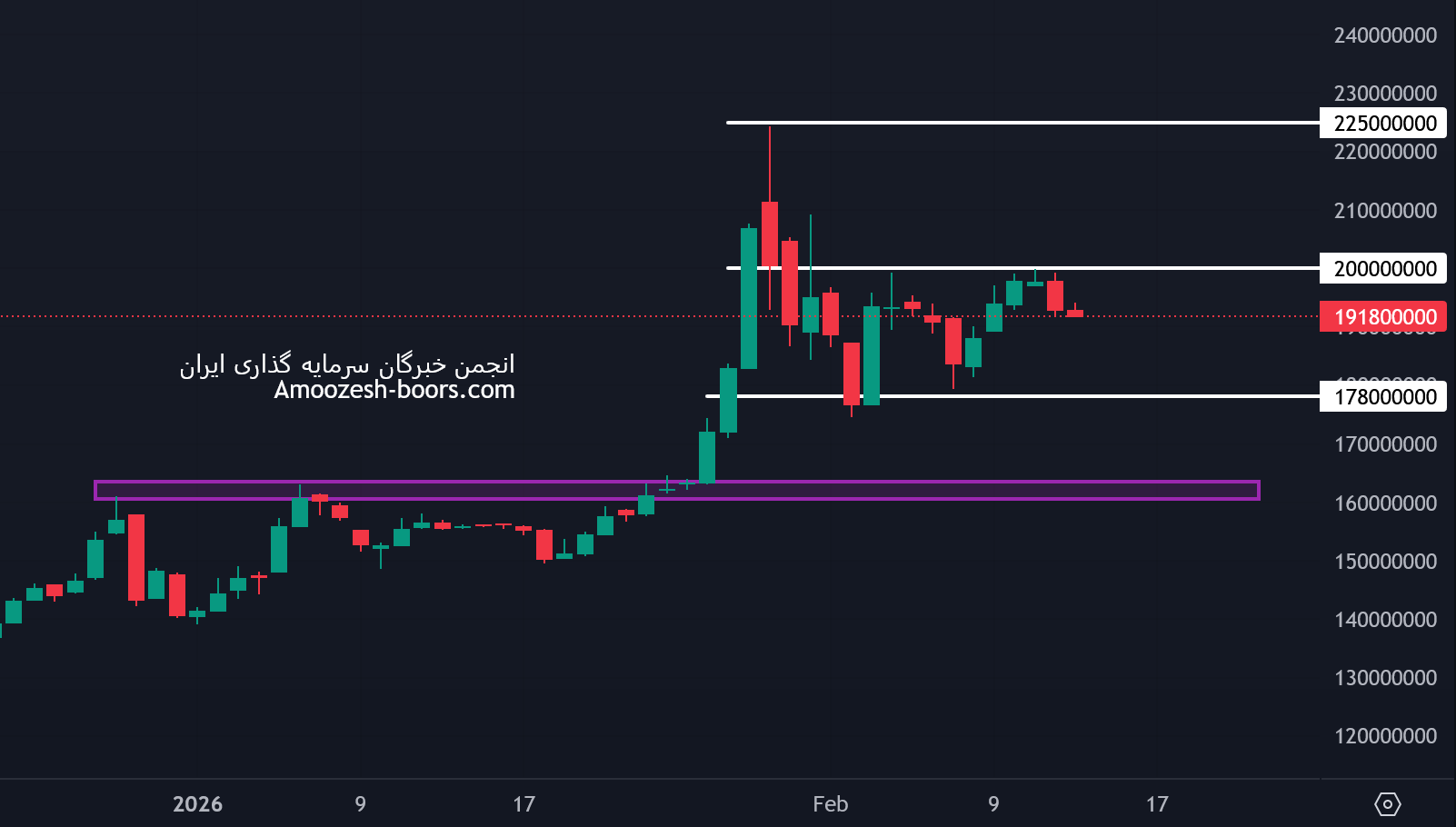 ۲- در سناریوی دوم که احتمال رخ دادن کمتر (حدوده ۱۵٪) است، قیمت در یک محدوده خنثی به روند خود ادامه داده و ماه شاهد اصلاح زمانی خواهیم بود.