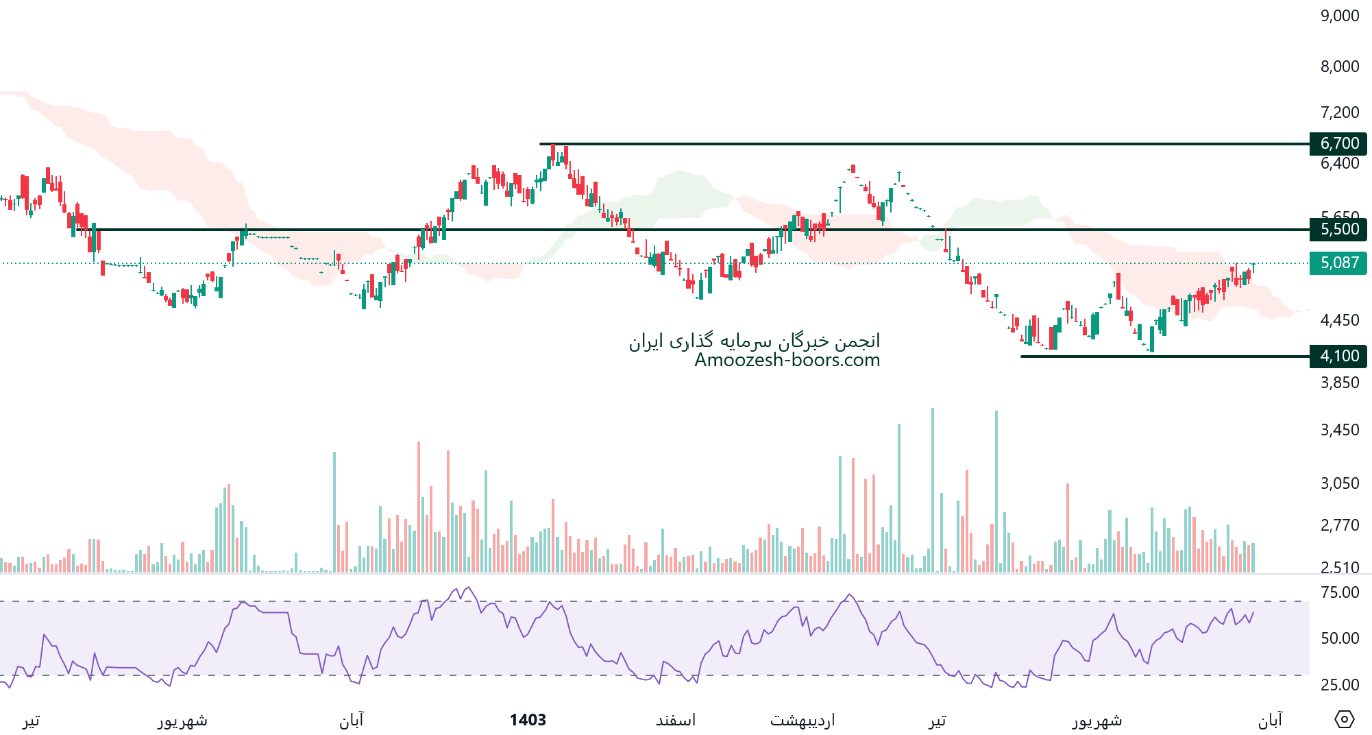 با توجه به شرایط فعلی، در صورت تثبیت قیمت بالای مقاومت 550 تومان، احتمال شکل گیری سیگنال خرید و ادامهی روند صعودی وجود دارد.