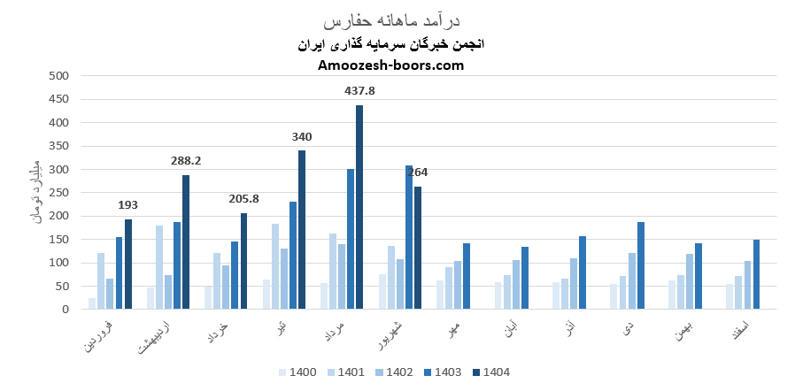 سهام حفارس از ابتدای سال مالی تا پایان مرداد 1404، مجموع درآمد ثبت شده شرکت به 1465 میلیارد تومان رسیده که نسبت به مدت مشابه سال گذشته 43 درصد رشد داشته، و در همین حال 65 درصد از کل درآمد سال گذشته تحقق یافته است.