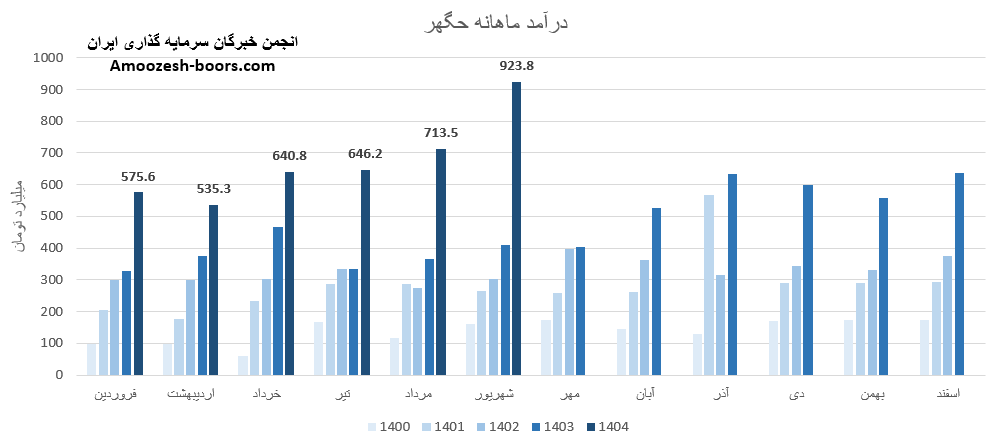 سهام حگهر از ابتدای سال مالی تا پایان مرداد 1404، مجموع درآمد ثبت شده شرکت به 3111 میلیارد تومان رسیده که نسبت به مدت مشابه سال گذشته 67 درصد رشد داشته، و در همین حال 55 درصد از کل درآمد سال گذشته تحقق یافته است.