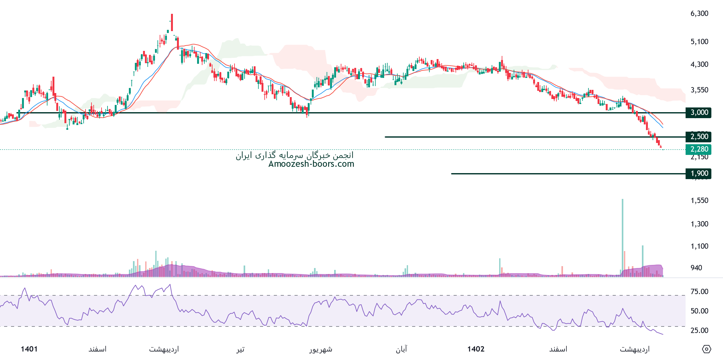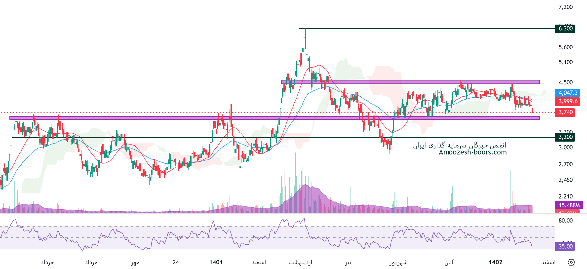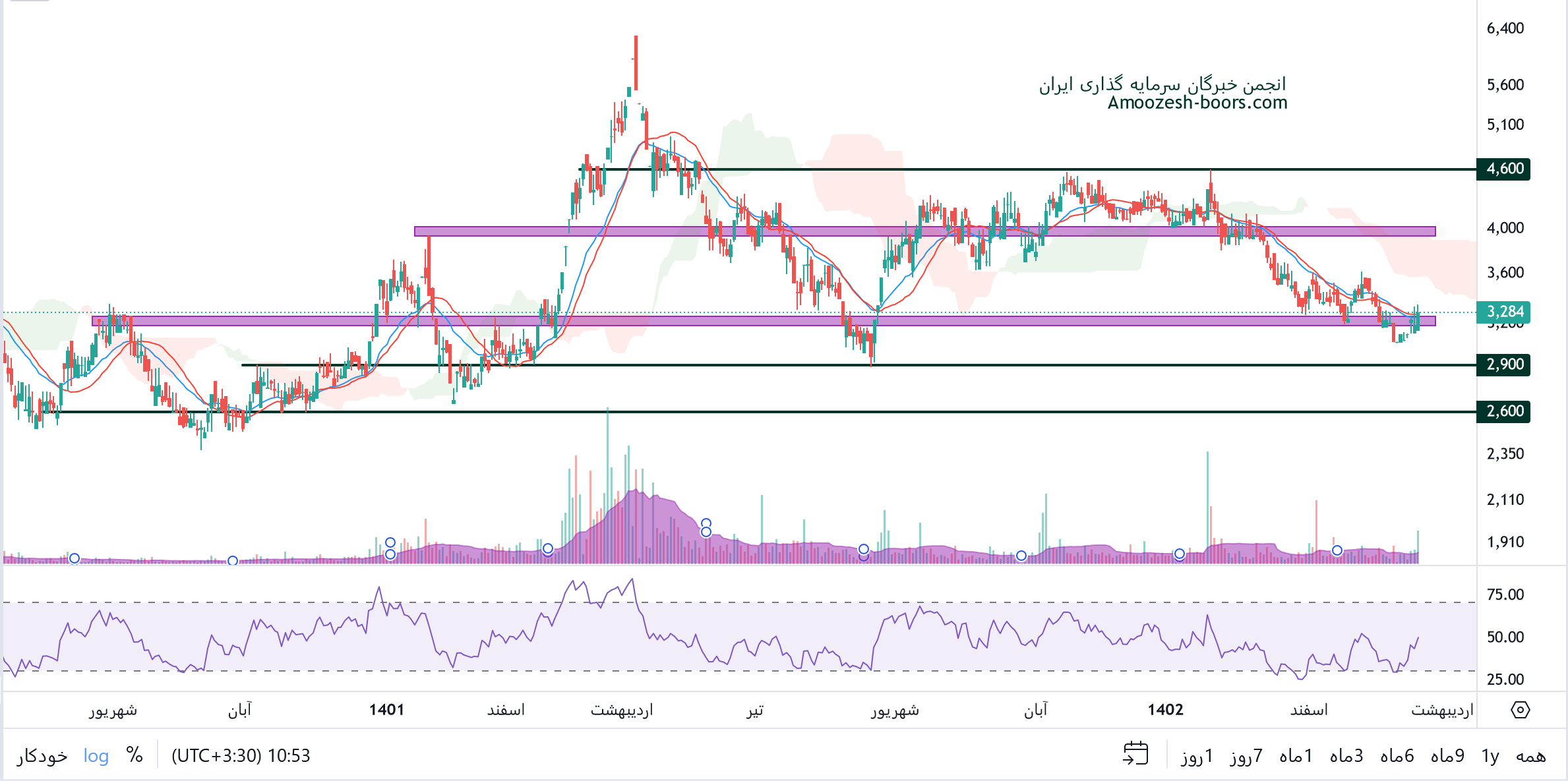 تحلیل تکنیکال و حمایت مقاومت سهم خاور