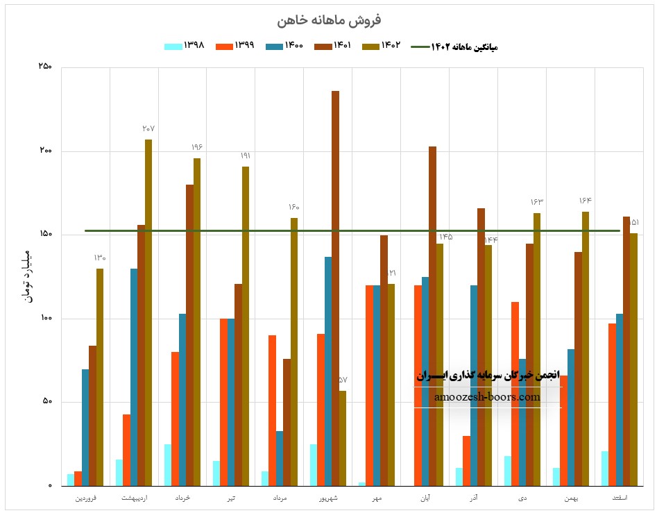 نماد خاهن در اسفند ماه حدود بیش از 1673 تن از محصولات خود را به فروش رساند که این میزان در مقایسه با ماه گذشته 4 درصد کاهش داشته است.