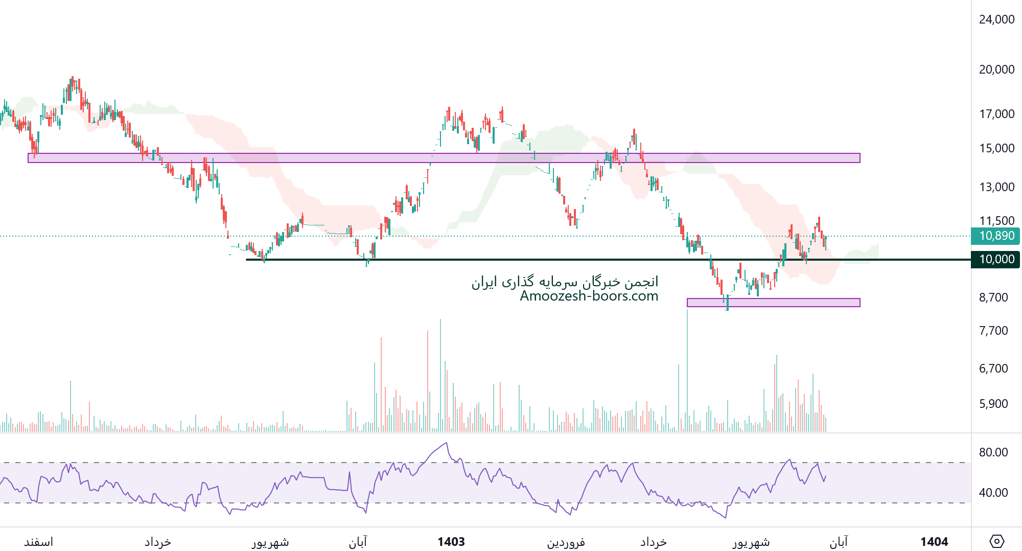 شکست حمایت 1000 تومان، می تواند منجر به افت قیمت و ایجاد سیگنال فروش شود.