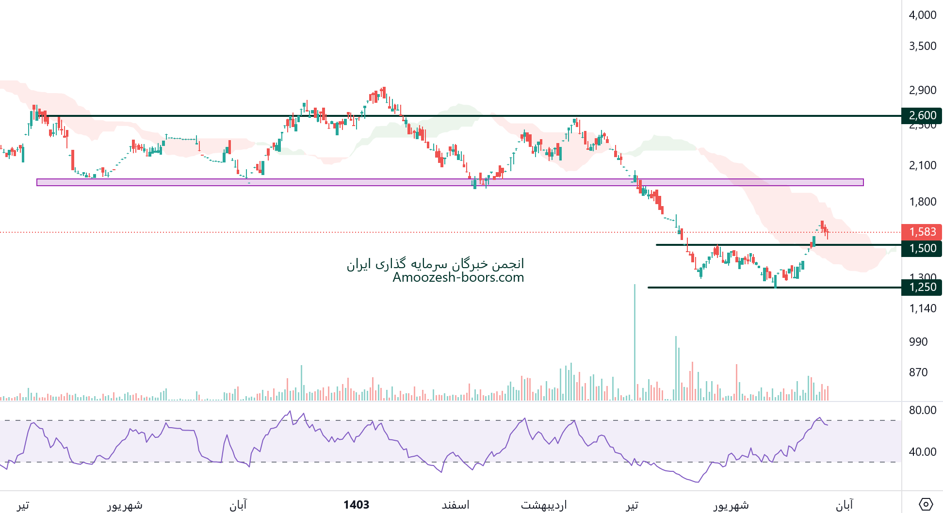 در صورت شکست مقاومت 150 و تثبیت بالای آن، می‌توان انتظار ادامه‌ی روند صعودی و رشد قیمت سهم تا مقاومت بعدی در محدوده‌ی 200 تومان را داشت.