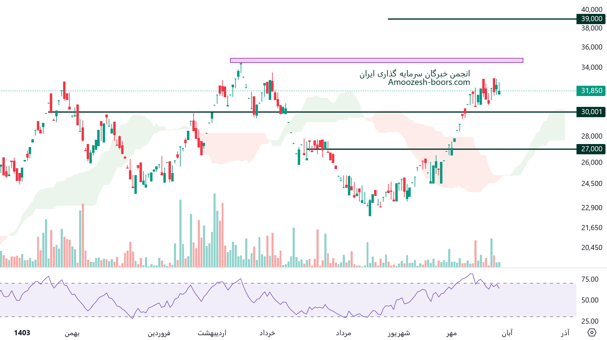 شکست حمایت 3000 تومان، می تواند منجر به افت قیمت و ایجاد سیگنال فروش شود.
