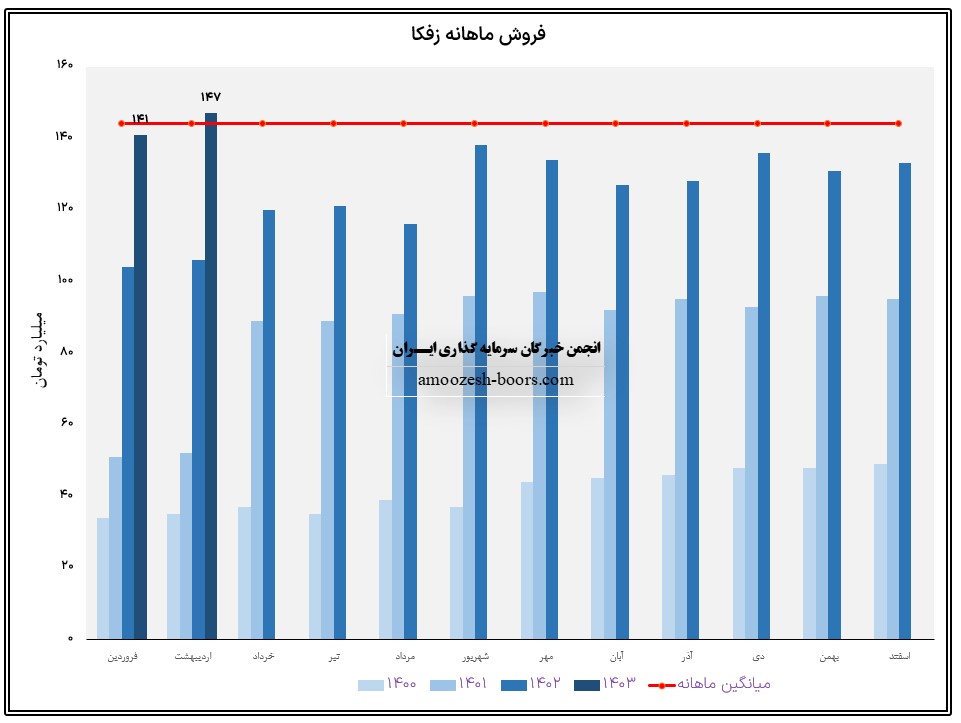 فروش نماد زفکا در مرداد ماه سال 1403 مبلغ 139.8 میلیارد تومان بوده است.