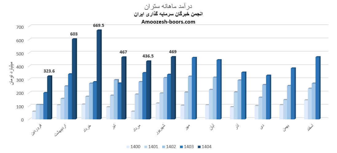 بر اساس گزارش فعالیت سهم ستران که در کدال منتشر شده، این شرکت در این ماه توانسته به درآمد 469 میلیارد تومان دست یابد، این عدد در مقایسه با ماه گذشته تغییر 7%+، در مقایسه با متوسط ماهانه 5%- و در مقایسه با مدت مشابه 39%+ داشته است.