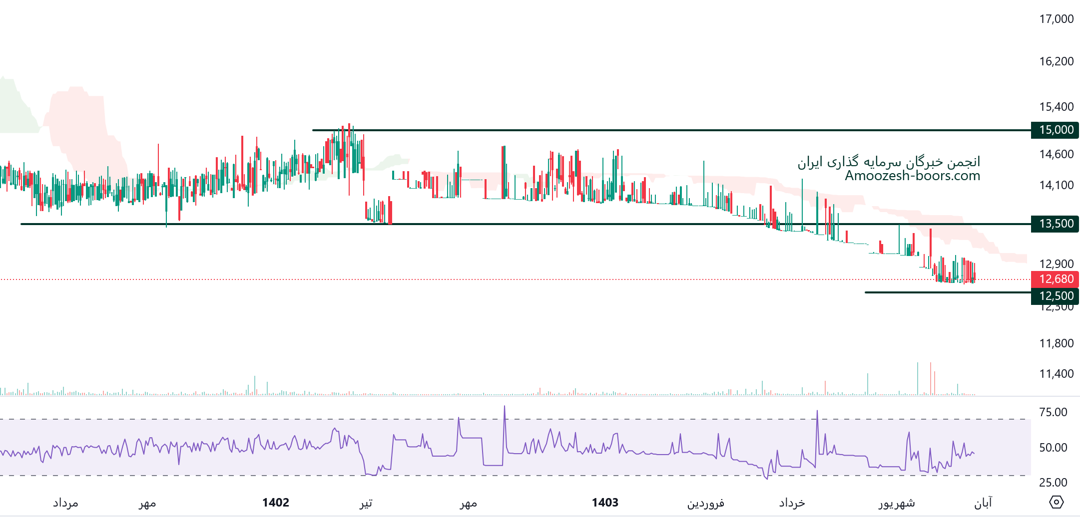 شکست حمایت 1250 تومان، می تواند منجر به افت قیمت و ایجاد سیگنال فروش شود.