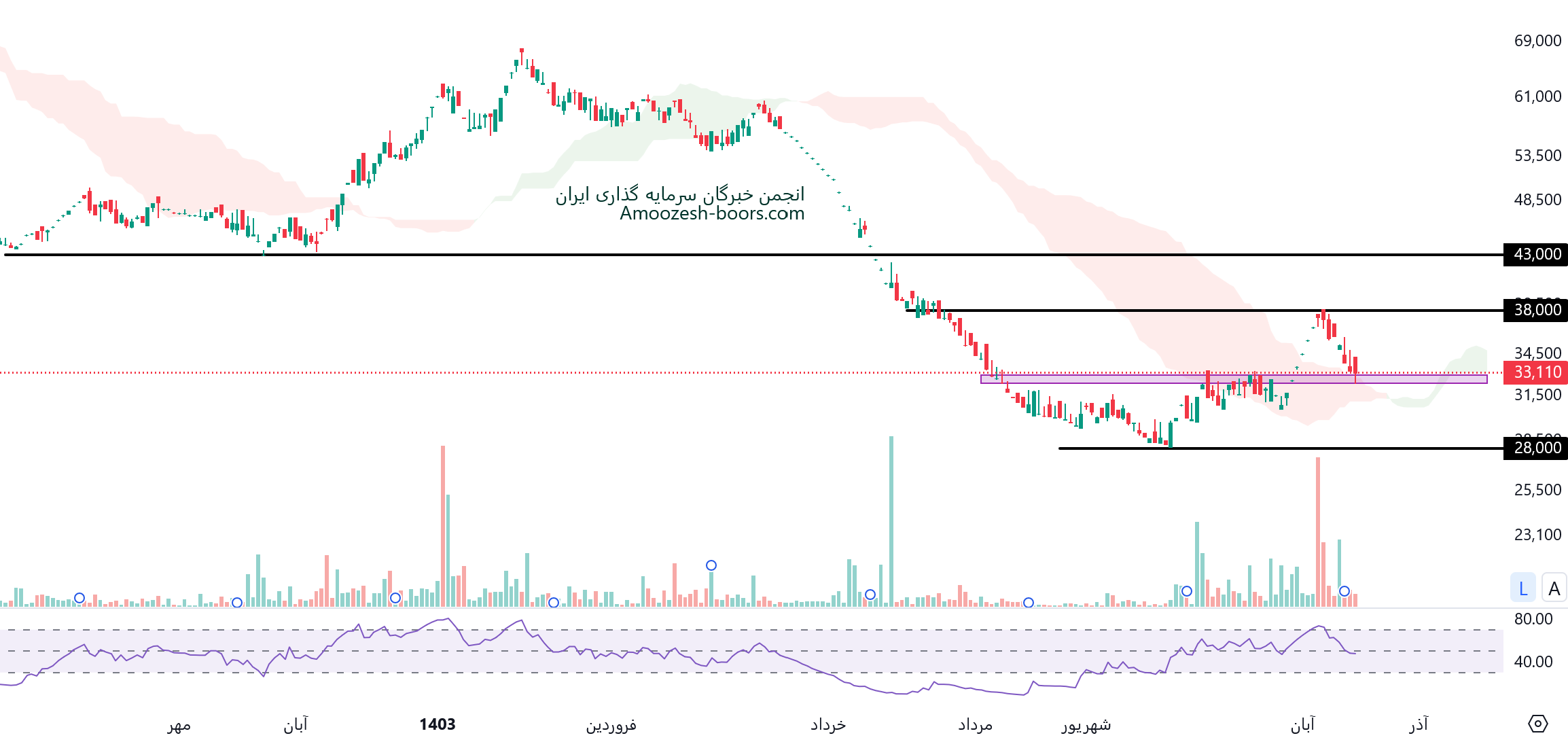 شکست حمایت 3250 تومان، می تواند منجر به افت قیمت و ایجاد سیگنال فروش شود.