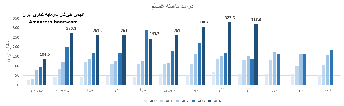 طبق گزارش های منتشرشده در کدال، مجموع درآمد عملیاتی غسالم تا پایان مهر 1404 به 1737 میلیارد تومان رسیده است.