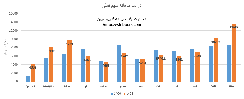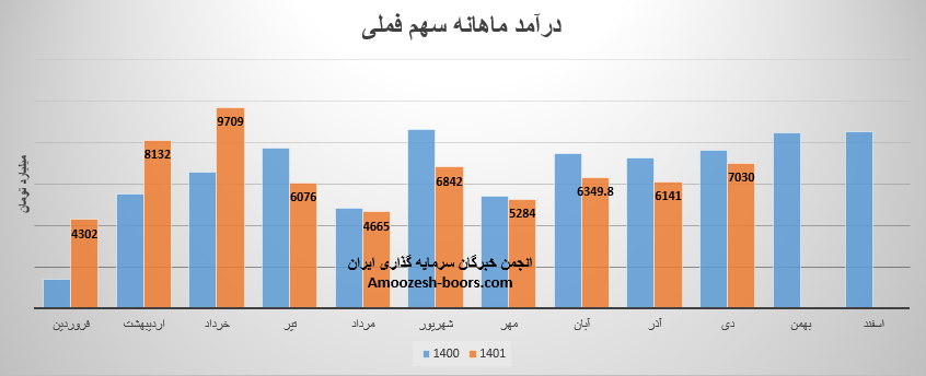 نماد فملی با ثبت درآمد 13688 میلیارد تومانی و ایجاد یک رکورد عالی سال مالی خود را به اتمام رساند، درآمد اسفند ماه سال 1401 سهم فملی نسبت به ماه قبل 34%، نسبت به متوسط ماهانه 101% و نسبت به اسفند سال گذشته 60% افزایش را تجربه نموده است، بیشترین وزن سبد فروش شرکت ملی صنایع مس ایران مربوط به محصول کاتد بوده که نرخ فروش این محصول افزایش 36 درصدی و میزان فروش آن افت 5 درصدی نسبت به ماه قلبی را داشته است، مجموع عملکرد 12 ماهه نماد فملی نسبت به مدت مشابه 111% رشد داشته است.