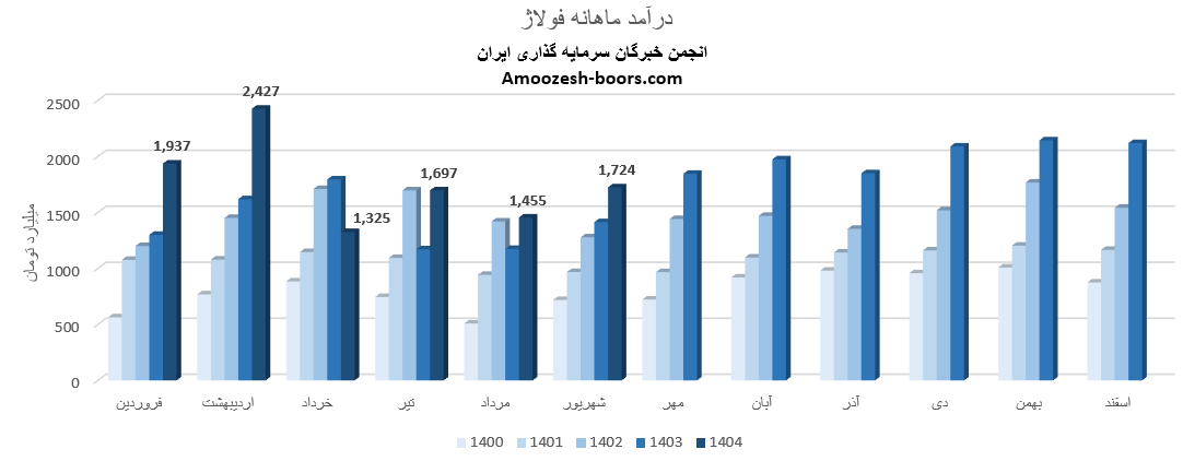 سهام فولاژ از ابتدای سال مالی تا پایان مرداد 1404، مجموع درآمد ثبت شده شرکت به 8841 میلیارد تومان رسیده که نسبت به مدت مشابه سال گذشته 25 درصد رشد داشته، و در همین حال 43 درصد از کل درآمد سال گذشته تحقق یافته است.