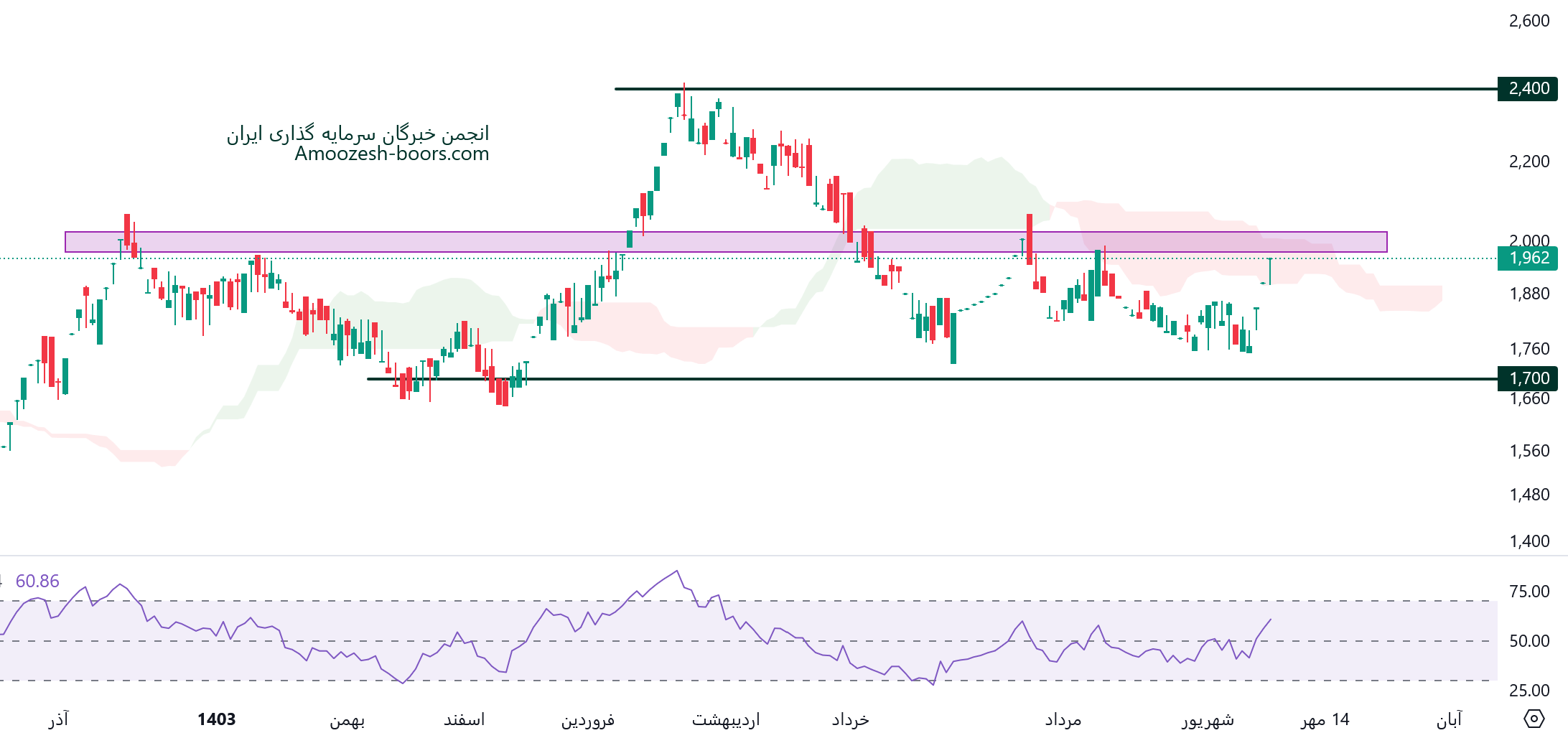 با توجه به شرایط فعلی، در صورت تثبیت قیمت بالای مقاومت 200 تومان، احتمال شکل گیری سیگنال خرید و ادامه‌ی روند صعودی وجود دارد.
