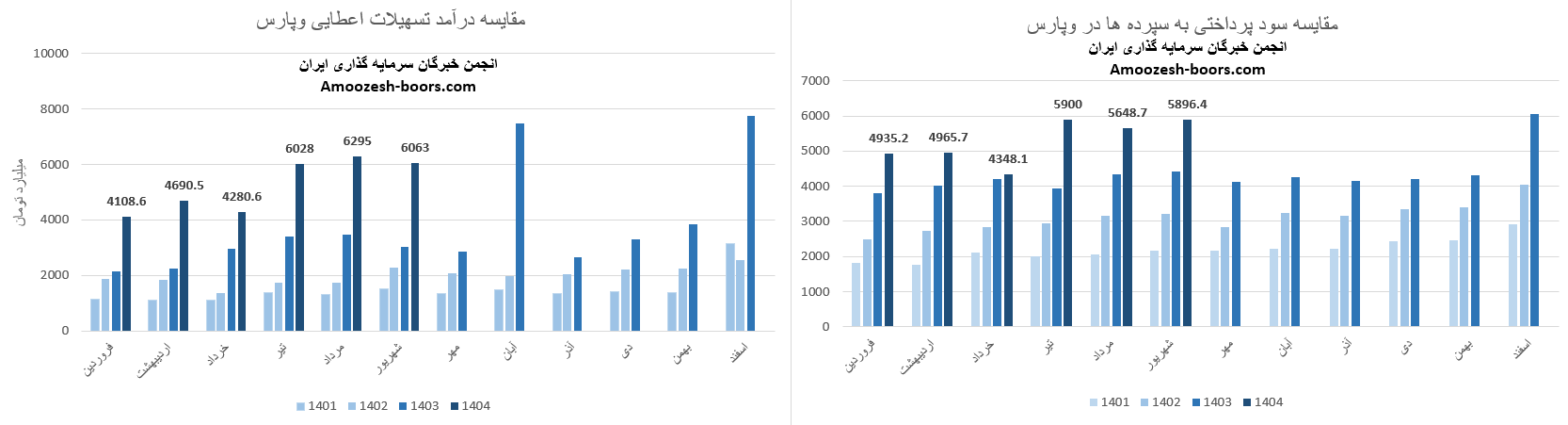 درآمد های عملیاتی وپارس در 3 ماهه منتهی به خرداد 1404 افزایش 46 درصدی داشته است، همچنین سود ناخالص و سود عملیاتی به ترتیب تغییرات 4+ و 45+ درصد را تجربه نموده، EPS ( سود هر سهم ) وپارس شش طی این دوره 7 ریال بوده که کاهش 103 درصدی را تجربه نموده است.