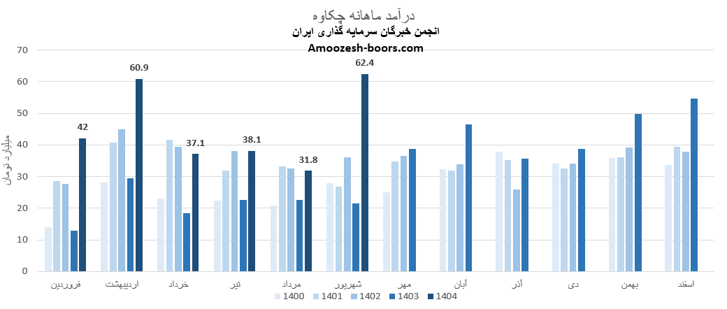 سهام چکاوه از ابتدای سال مالی تا پایان مرداد 1404، مجموع درآمد ثبت شده شرکت به 210 میلیارد تومان رسیده که نسبت به مدت مشابه سال گذشته 98 درصد رشد داشته، و در همین حال 54 درصد از کل درآمد سال گذشته تحقق یافته است.
