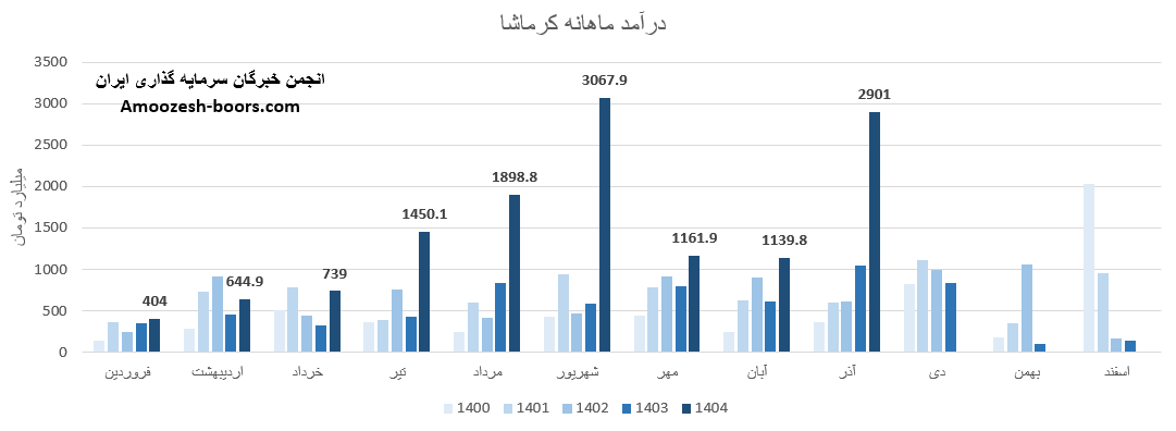 سهام کرماشا از ابتدای سال مالی تا پایان مرداد 1404، مجموع درآمد ثبت شده شرکت به 5137 میلیارد تومان رسیده که نسبت به مدت مشابه سال گذشته 116 درصد رشد داشته، و در همین حال 79 درصد از کل درآمد سال گذشته تحقق یافته است.