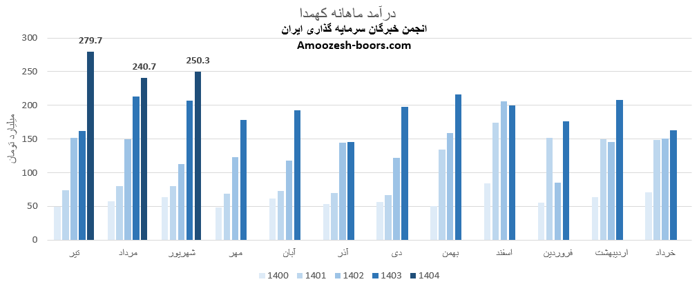 سهام کهمدا از ابتدای سال مالی تا پایان مرداد 1404، مجموع درآمد ثبت شده شرکت به 520 میلیارد تومان رسیده که نسبت به مدت مشابه سال گذشته 37 درصد رشد داشته، و در همین حال 23 درصد از کل درآمد سال گذشته تحقق یافته است.