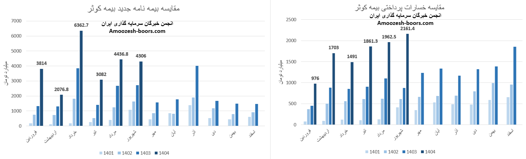 میزان بیمهنامههای جدید : 4436.8 میلیارد تومان بوده که نسبت به ماه قبل 44% افزایش داشته است.